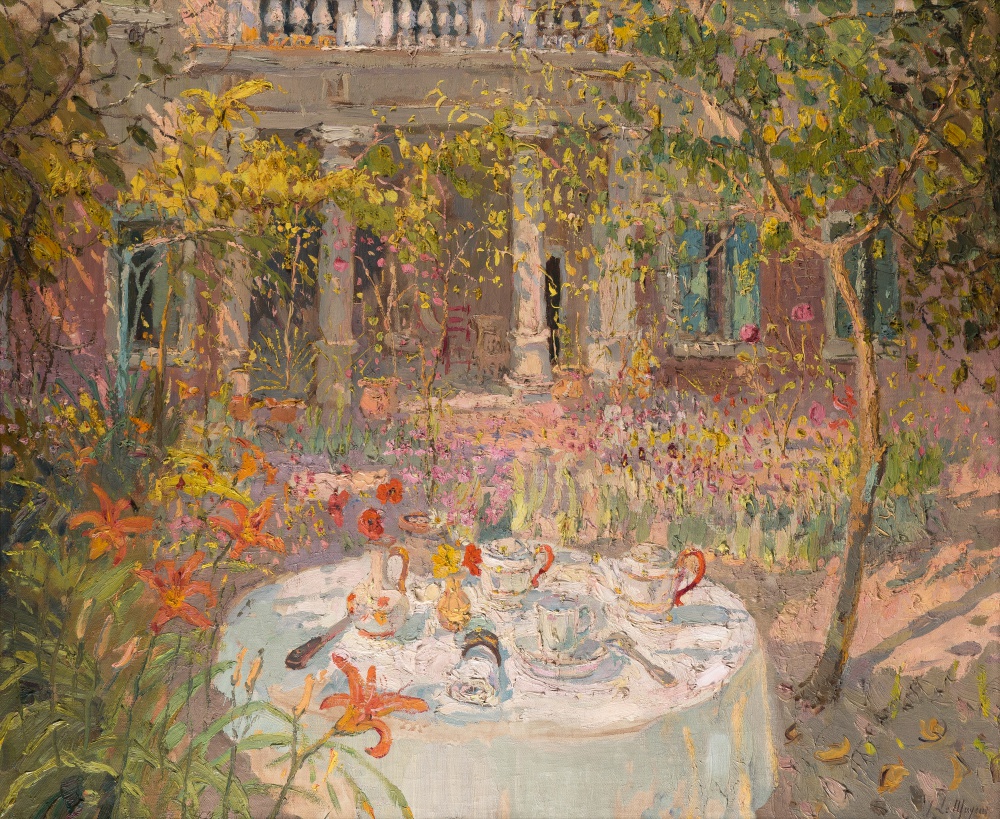 ADRIEN-JEAN LE MAYEUR DE MERPRÈS (1880-1958)‘View on Palazzo Frollo garden, Venice’signed l.r., canvas.100 x 120 cm.Annotated verso: ‘no 1. a encadrer à la place du no. 18 (Vahinées)‘.Provenance: private collection Belgium.
