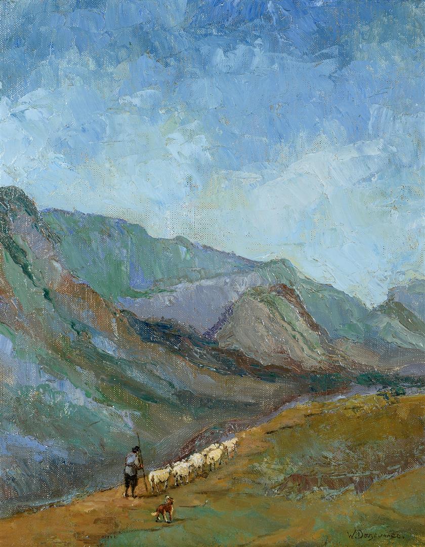 Estimate: € 600 – 800Lot 327:'Shepherd and herd in mountainous landscape', signed l.r., canvas on board.Dim. 29 x 23 cm.