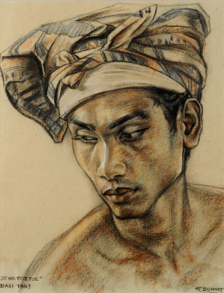 Rudolf Bonnet (1895-1978), ‘Portrait of Ni Najas’, signed, Bali 1950, 58 x 42 cm.