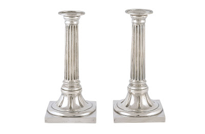 384 Stel zilveren kandelaars in de vorm van een zuil.