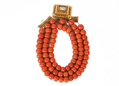 442 Drie-rijig bloedkoralen collier, Volendam.