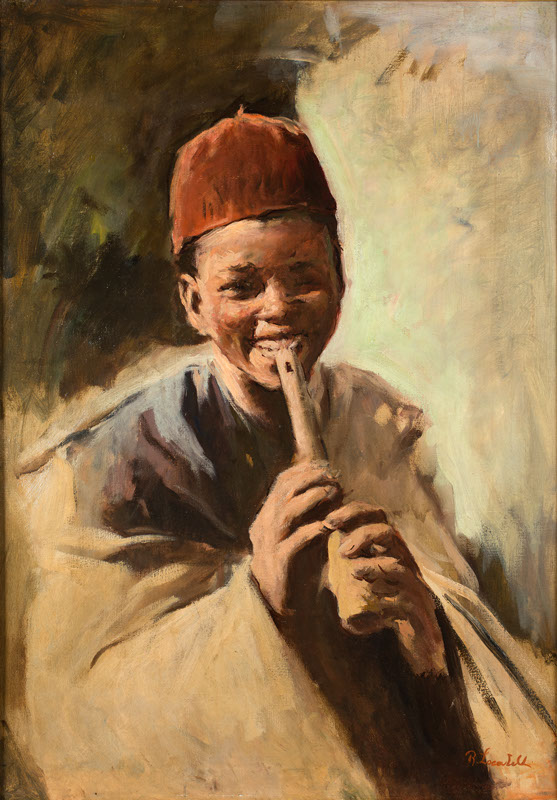 The present lot probably represents some of the most primal instincts of mankind – the desire to live, and to express oneself freely. Locatelli used the themes of young innocence, which the boy clearly expresses, and the joy of making music, which makes this painting a feast for the eyes. His vigorous and light-hearted brush strokes emphasize these themes.