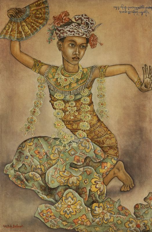 6552 Anak Agung Gede Sobrat (1911-1992), ‘Balinese danser’, gesigneerd, doek, afm. 83 x 56 cm . € 16.000