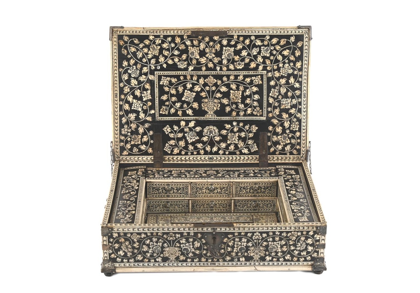 De veiling wordt afgesloten met een museale documentenkist, India, ca. 1710-1720, waarvan het Rijksmuseum een vergelijkbaar stuk in haar collectie heeft.